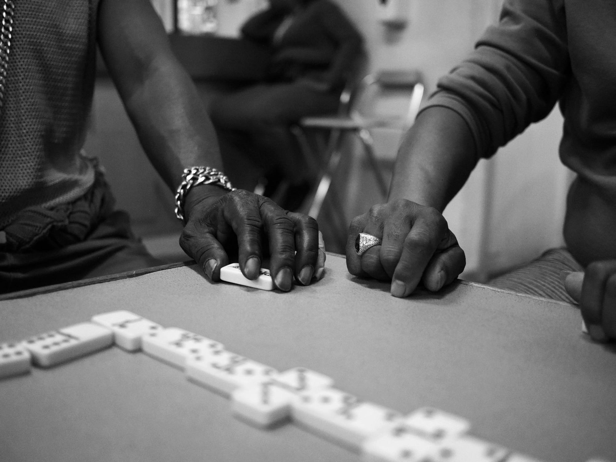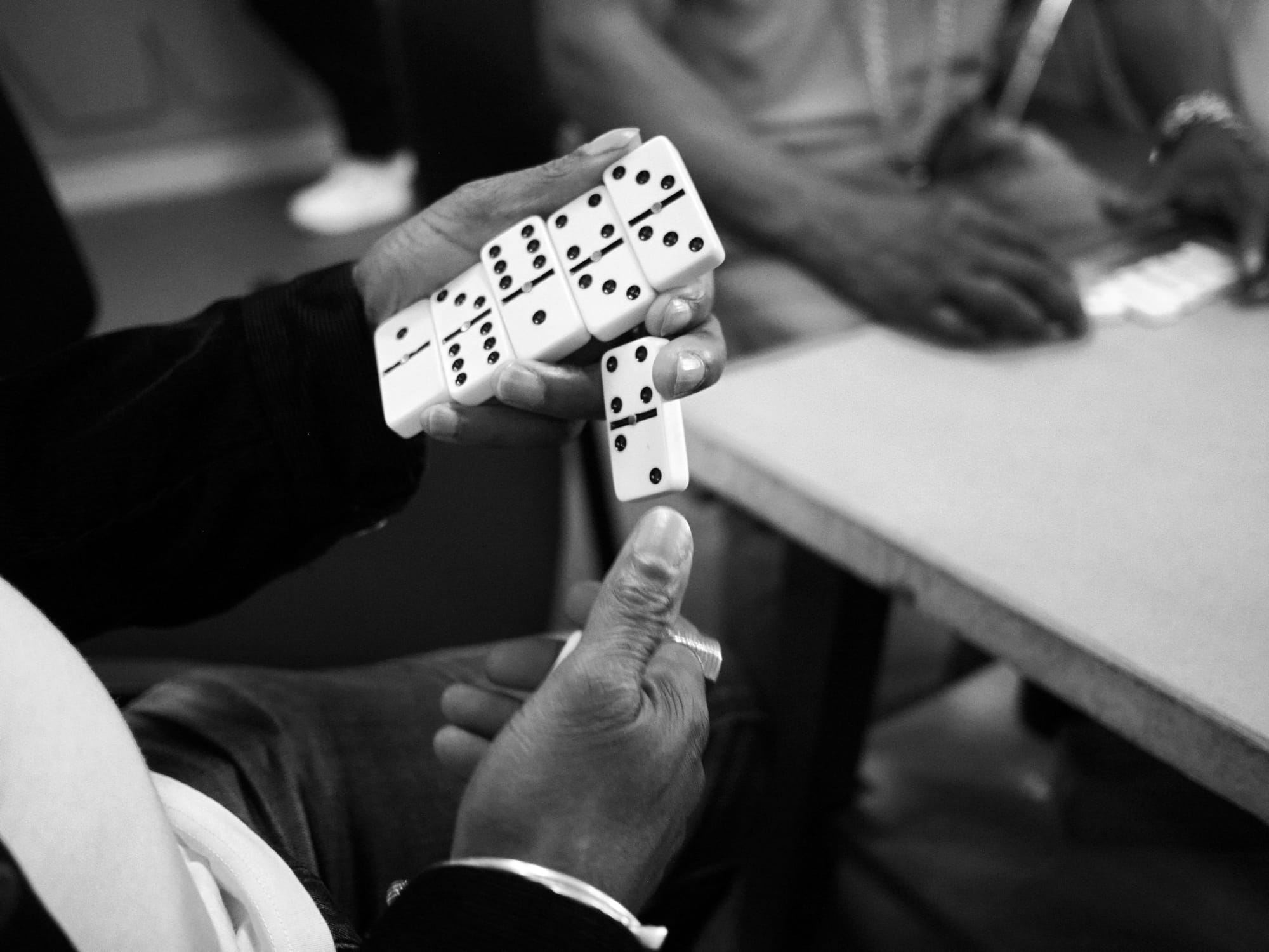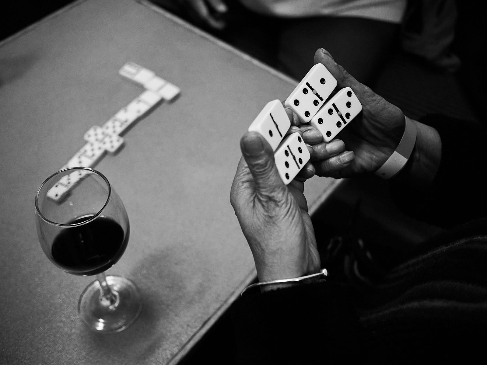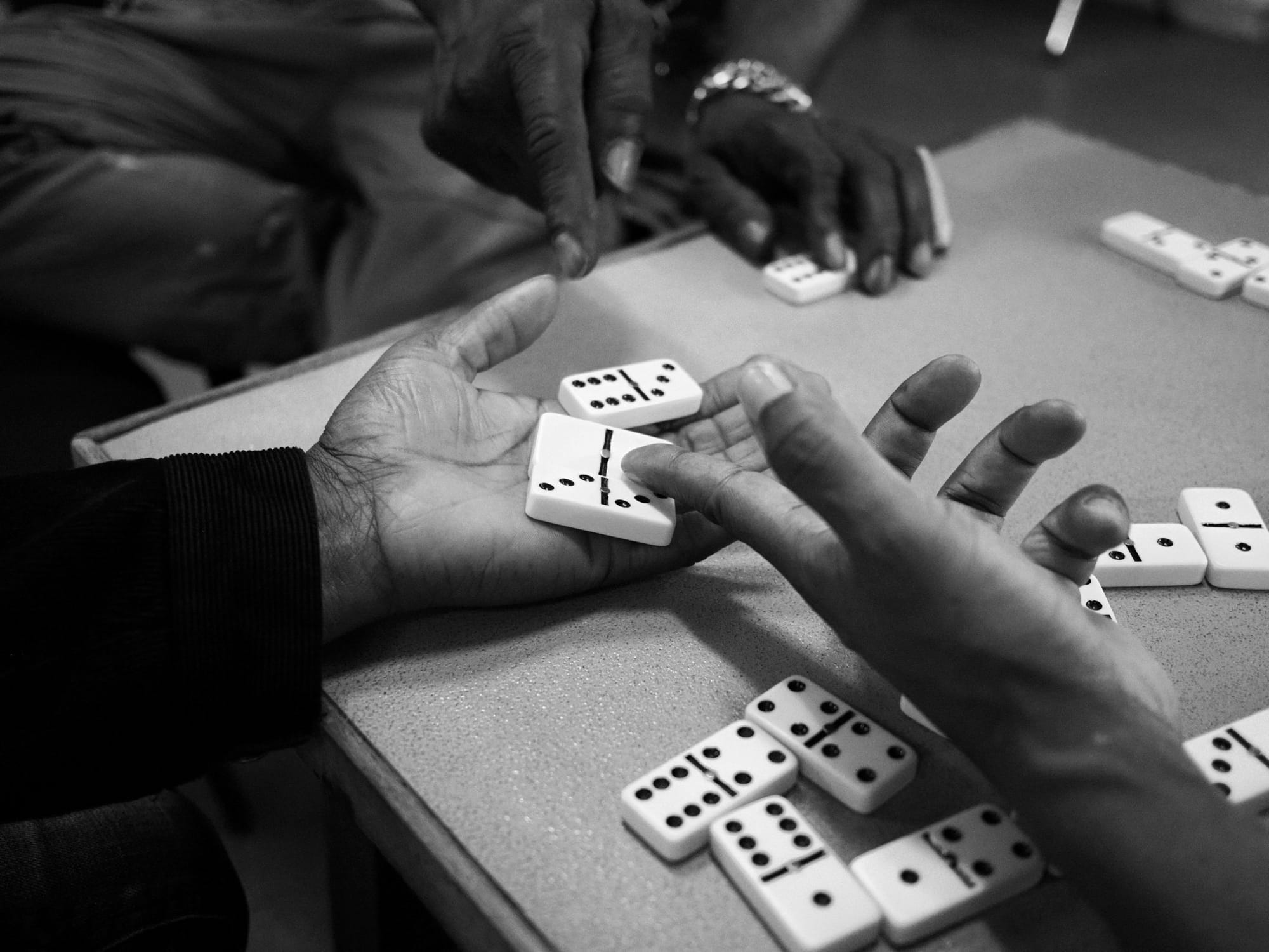 Hands arrive before words do. Fingers, worn and knowing, dip into the pile as though searching for something older than the game itself. The dominoes speak first, a low, restless music. Bone against bone. A dry, deliberate clatter that fills the room the way memory does, without asking permission. It is not noise. It is announcement.
